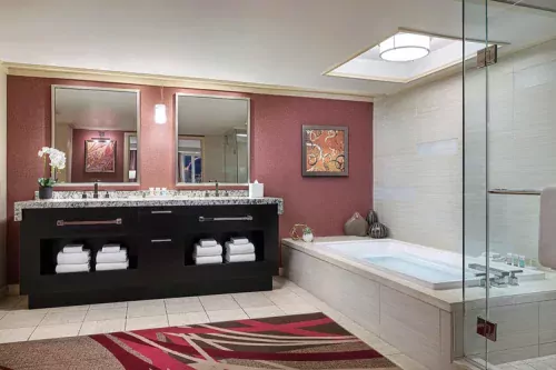 The Mirage Dit elegante resort is een tropisch toevluchtsoord in het centrum van Las Vegas. The Mirage ligt aan de Las Vegas Strip, op 6,5 km van de internationale luchthaven Harry Reid. Het hotel heeft grote zwembaden, een full-service casino en een spa. The Mirage Las Vegas heeft een grote verscheidenheid aan eetgelegenheden, waaronder het Tom Colicchio Heritage Steak House en het Osteria Costa Restaurant. Je kunt genieten van een informele maaltijd in restaurant Pantry. Het hotel heeft ook een aantal bars en lounges. Het hotel beschikt verder over een replica van een vulkaan die lava spuwt.